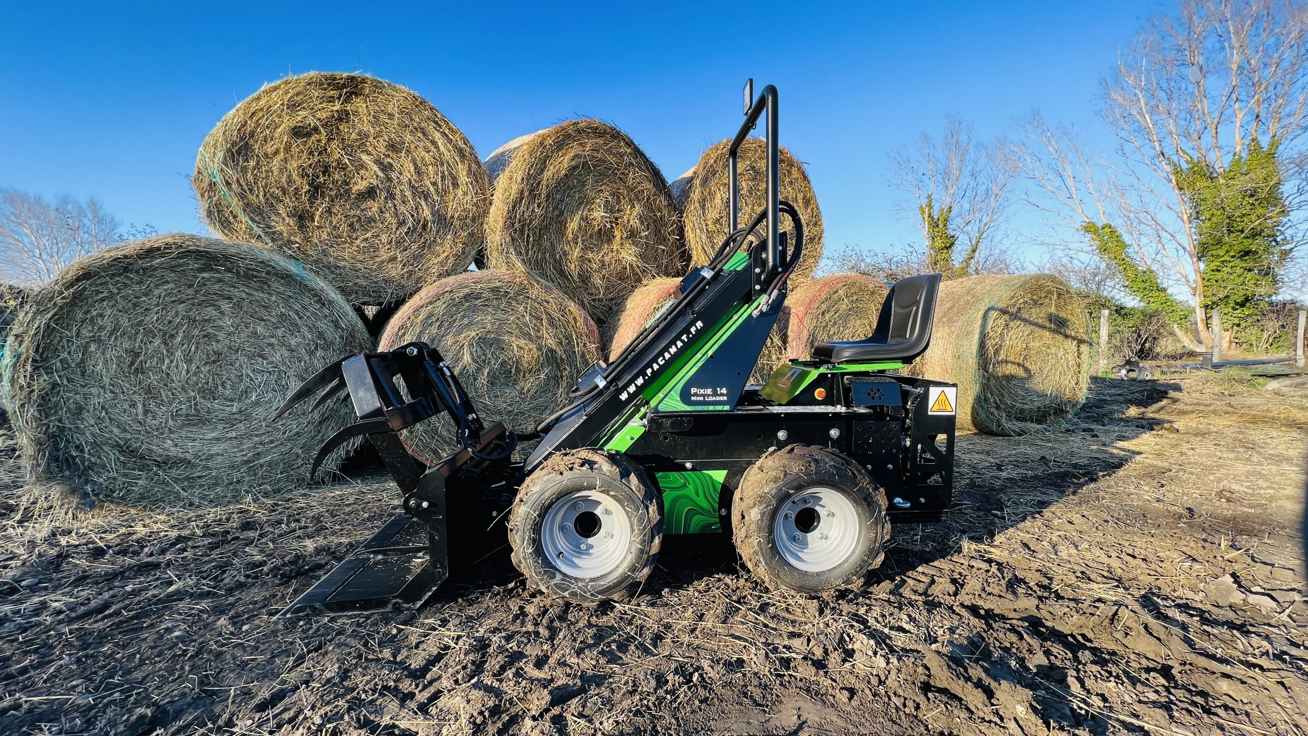 Depuis son lancement en 2022, le PIXIE 14 V2 s’est imposé comme une solution incontournable pour les professionnels et les particuliers. Ce valet de ferme compact combine puissance, maniabilité et fiabilité. Entièrement fabriqué en Europe selon les normes CE, il est équipé de composants haut de gamme. Son tarif à partir de 9 900 € H.T. (11 880 € TTC) inclut un godet multifonction (ou autre accessoire), ce qui en fait l’une des machines agricoles compactes les plus compétitives du marché.