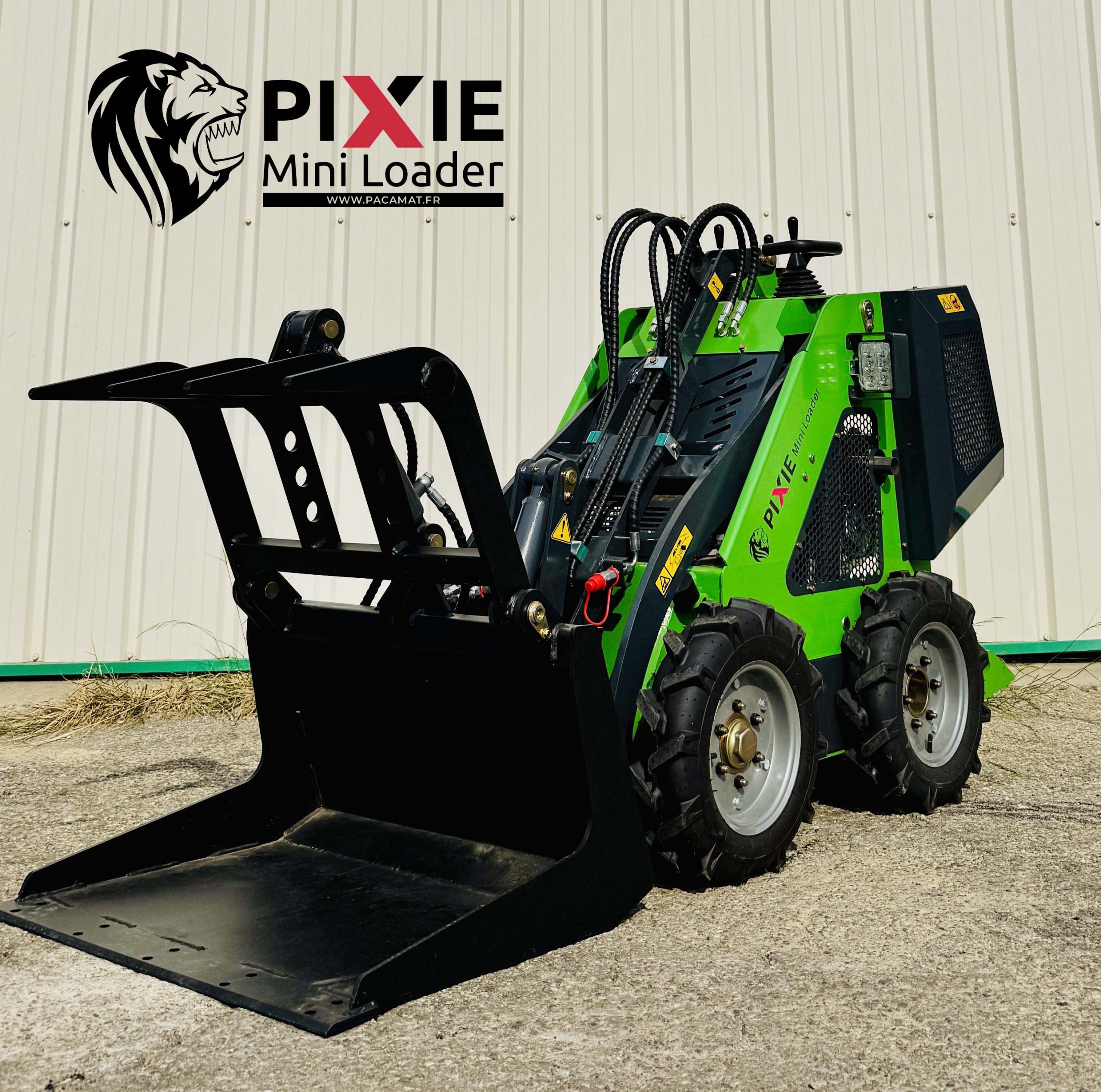 Le mini-chargeur PIXIE MINI PX320 est compatible avec une large gamme d’accessoires :